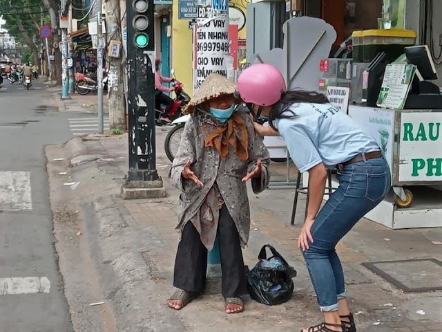 “Ông Bà Ơi, Tôi Đói Quá”…!Tình nguyện viên Nguyễn Huyền Trang trao phần cơm nhân ái cho một bà cụ
