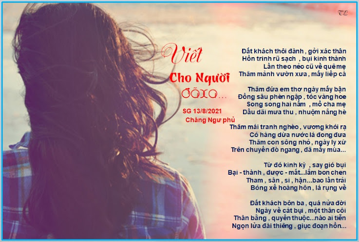 CHIỀU TRÊN BỜ BIỂN ![]() Chiều trên bờ biển ngắm tà dương, Nghĩ đến thời gian sống cõi trần,Không bao lâu nữa thành tro bụi, Nhẩm đếm ngày vui được mấy phần. ![]() Chiều trên bờ biển ngắm chim bay, Chiều trên bờ biển ngắm mù khơi, Mặt trời từ giã biển mà đi. Chiều nay trên biển ngắm thiên nhiên, Chỉnh sửa lại bởi Lan Huynh - 30/Aug/2021 lúc 1:41pm |