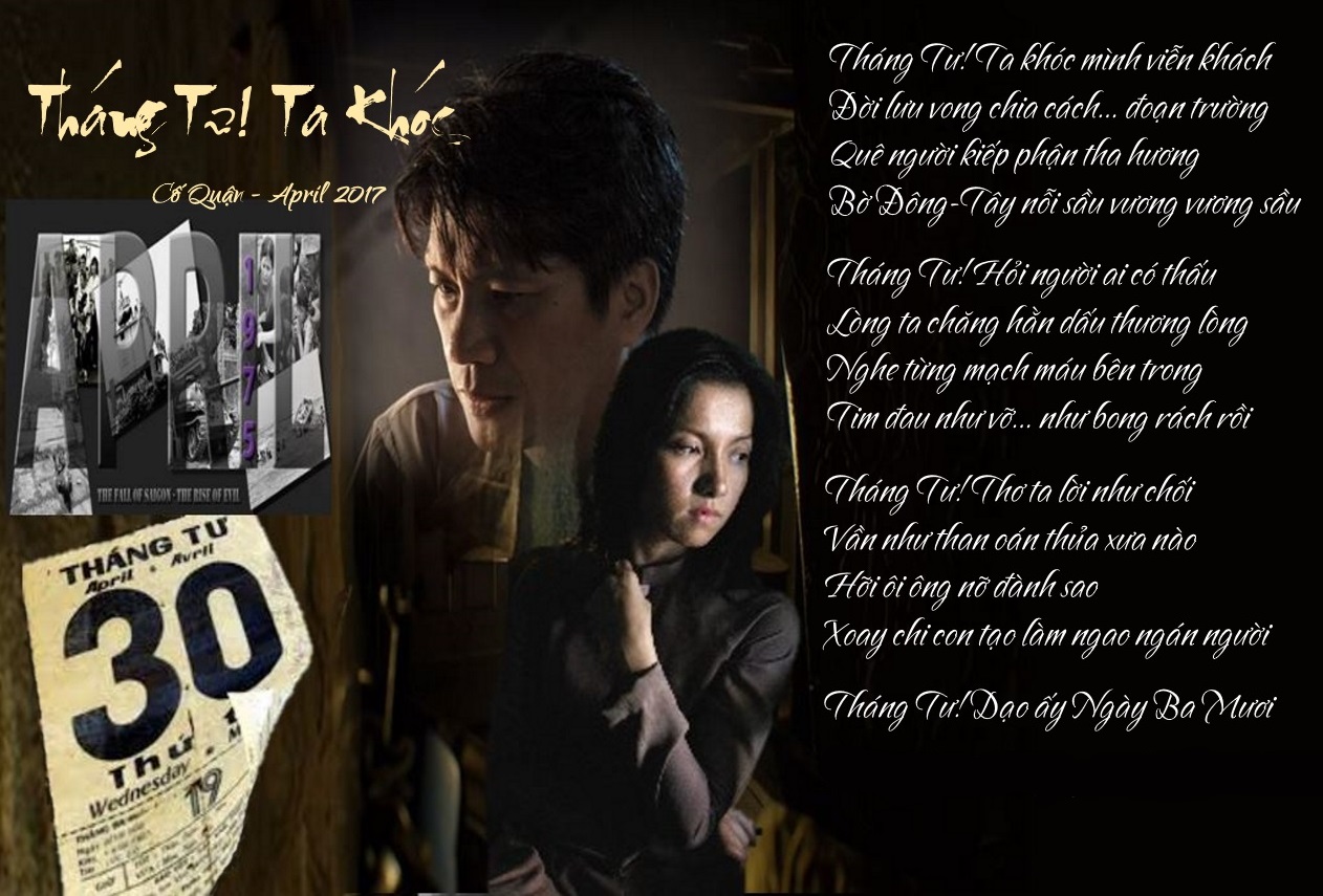 ![]() Tháng Tư có kẻ ra biển đứng Tháng Tư có kẻ ra biển đứng Lớn tiếng kêu than vọng đất trời Nên gió gào thét sóng gào thét Hải âu cánh dạt mịt mù khơi ![]() Tháng Tư có kẻ bầy hương án Nến thắp đôi hàng chiêu niệm ai Ta nghe thảm thiết lời kinh khổ Nhang khói gọi hồn sông núi ơi ![]() Tháng Tư nghe tiếng hờn ai oán Anh hùng hào kiệt thác oan khiên Chương sử trăm hồi chưa chép hết Còn động trời NAM tiếng sấm rền Tháng Tư nắng đỏ thấm sắc máu Hỏi người còn nhớ cuôc binh đao? Bạn ta chết dữ không bia mộ Phách tán hồn xiêu ở chốn nào? ![]() Tháng Tư hảo hán cũng rơi lệ Nước mắt đã đấy một biển đông Tràn lấp càn khôn mờ nhật nguyêt Thành lời thống hối tạ non sông ![]() Tháng Tư kể chuyện người biệt xứ Mấy chục năm xa lạc dấu quê Tuyết sương từ độ phơi tóc trắng Chẳng biết có không một nẻo về ![]() Chúng ta ơi những đời vong quốc Gặp nhau lại thấy Tháng Tư buồn Kinh Kha sao chẳng qua sông Dịch Sao cứ đứng ngồi nhớ cố hương? BĐQ Nguyễn Văn Chúc Chỉnh sửa lại bởi Nhom12yeuthuong - 30/Apr/2017 lúc 3:28am |