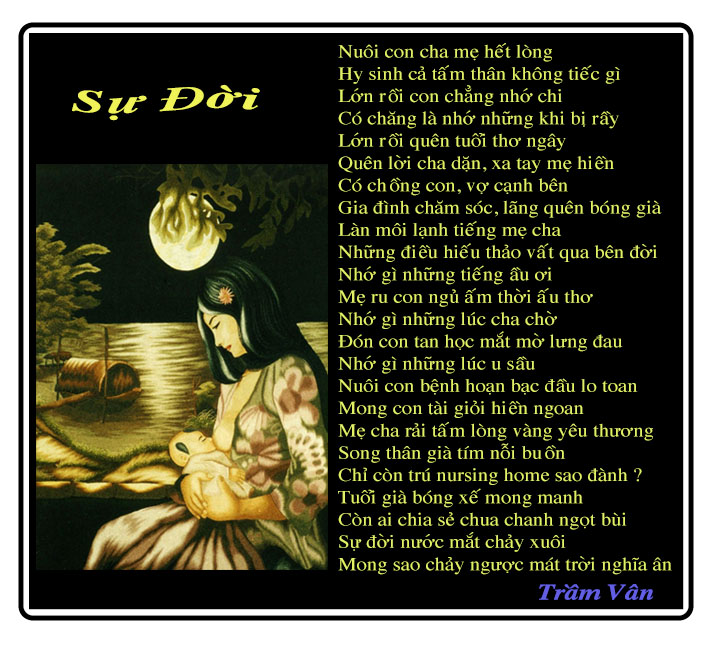 Lần đầu tiên cầm tập thơ và thấy hàng chữ "Ví mà tôi đổi thời gian được. Đổi cả thiên thu tiếng mẹ cười" của ông Trần Trung Đạo, tôi nhủ thầm: Chà! cái ông này đúng là nhà thơ, văn chương bóng bẩy. Đồng ý thì ai không thích được nhìn thấy mẹ cười? Tôi cũng vậy. Nhưng làm gì mà phải đổi cả thiên thu cơ chứ. Mẹ ở đó khi nào vui thì mẹ cười, khi nào giận mẹ la ráng chịu. Việc gì mà ông phải đem cả thiên thu để đổi lấy tiếng mẹ cười?