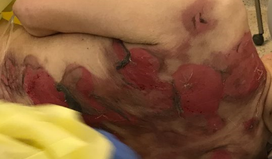 Ở phân khoa chữa phỏng, ông đuợc chữa trị y như một người bị phỏng, ông được quấn băng gần khắp cả người. Việc chữa trị sẽ không khó khăn lắm nếu như ông không bị “dị ứng” với nhà thương. Nhưng khổ nỗi với tình trạng hospital delirium trầm trọng của ông, ông đã gây phiền phức rất nhiều cho đội ngũ y tá săn sóc ông hằng ngày vì  ông luôn có ảo giác họ là những kẻ xấu muốn giết hại ông nên mỗi khi họ đến gần để đo áp huyết, lấy nhiệt độ hay lau mình, thay băng cho ông thì ông có phản ứng chống trả dữ dằn đối với họ như đánh, đá, phun nước bọt, vv. Do đó họ yêu cầu chúng tôi nên thường xuyên có mặt để nói cho ông biết là họ sắp làm gì để ông chịu nằm yên cho họ thi hành phận sự .