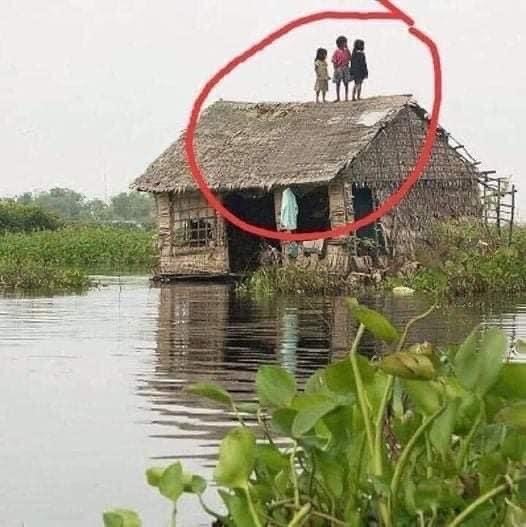 Mẹ ơi! nước ngập khỏi chân giường. Làm sao mẹ hỡi mưa cứ tuôn Bắt ghế con trèo lên trên mái Làm ơn cứu giúp, xin xót thương.