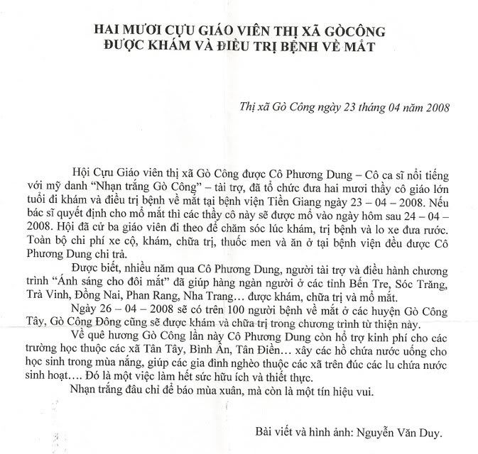 Quote ReGocong49 Replybullet Chủ đề: Ca sĩ Phương Dung và công việc từ thiện