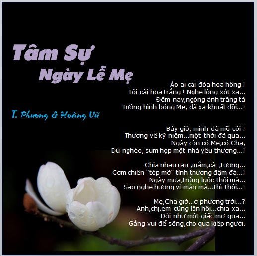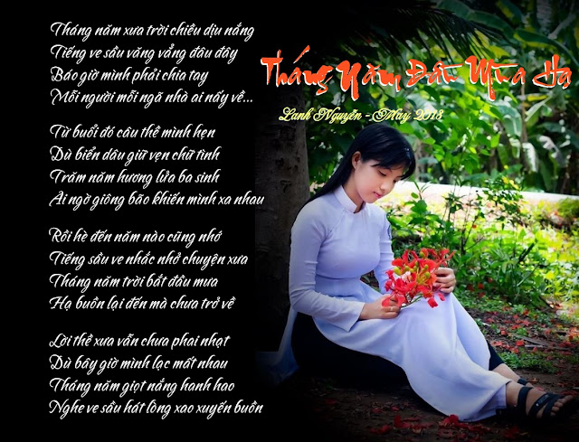 Tháng 5, Cơn Mưa Hạ Em đã xa rồi con phố cũ Nơi một thời ấp ủ tình yêu Nhớ sao vào mỗi buổi chiều Bên nhau chung bước với nhiều ước mơ Nơi nắng bụi sương mờ đất đỏ Mưa giăng giăng phố nhỏ thân thương Đợi em ở trước cổng trường Hàng thông xanh mát con đường ta đi Mùa hè nào chia ly vội vã Người xa xăm đợi mãi...thẩn thờ Bằng lăng tim tím ngẩn ngơ Trong trang lưu bút bài thơ vụng về Phố vắng vẻ, tái tê lối nhỏ Phượng vĩ buồn xác đỏ lặng im Vì đâu thổn thức con tim Một mình lặng lẽ đi tìm dáng xưa Tháng 5, từng cơn mưa đầu hạ Theo dòng đời hối hả qua mau Tóc xanh giờ đã phai màu Tình duyên vụn vỡ ...thôi đành kiếp sau