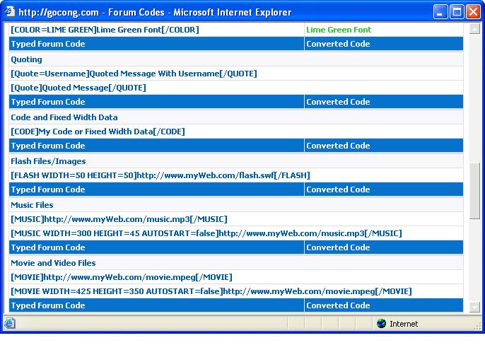 Nếu có 1 website nào đang có 1bản nhạc hay hình ảnh hoắ. video clip, nếu các thành viên thích thì dùng các code dươi đây để đem vào diễn đàn: